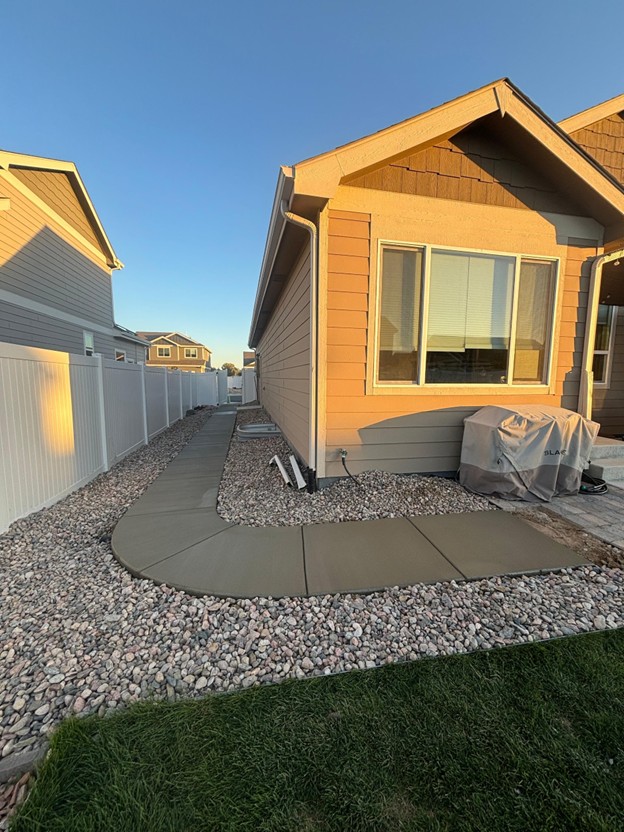 The finished result was outstanding — a smooth, durable sidewalk that now connects the driveway directly to the backyard patio. The pathway looks as though it was part of the home’s original design, blending functionality with curb appeal.